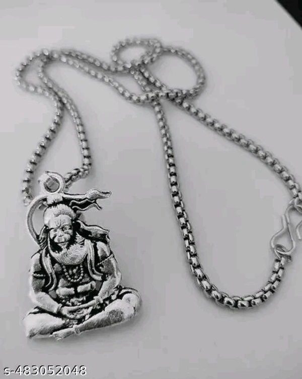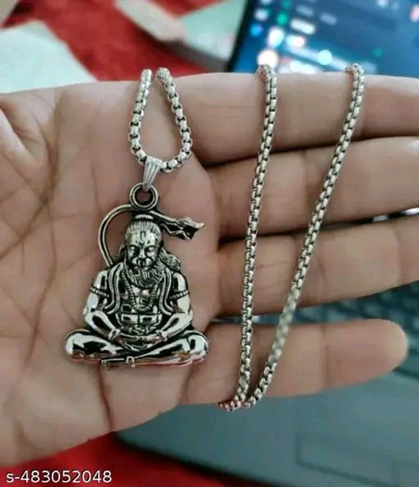 Hanuman Ji Chain Locket With Silver Small Statu ! Hanuman Ji Silver Locket For Men's & Boy's !